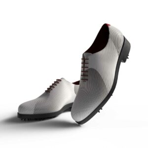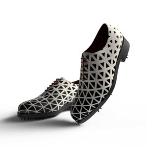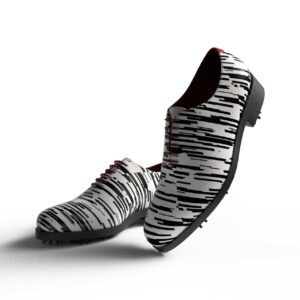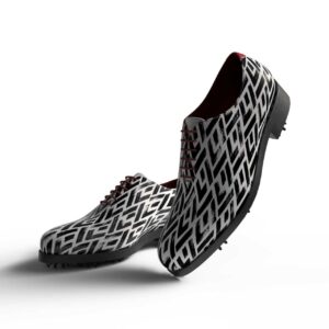 Experience sophistication with our handmade, custom-decorated golf shoes, crafted using the finest Italian techniques. Elegant in their monochrome geometric patterns, this line caters to discerning players who value both performance and unique style.